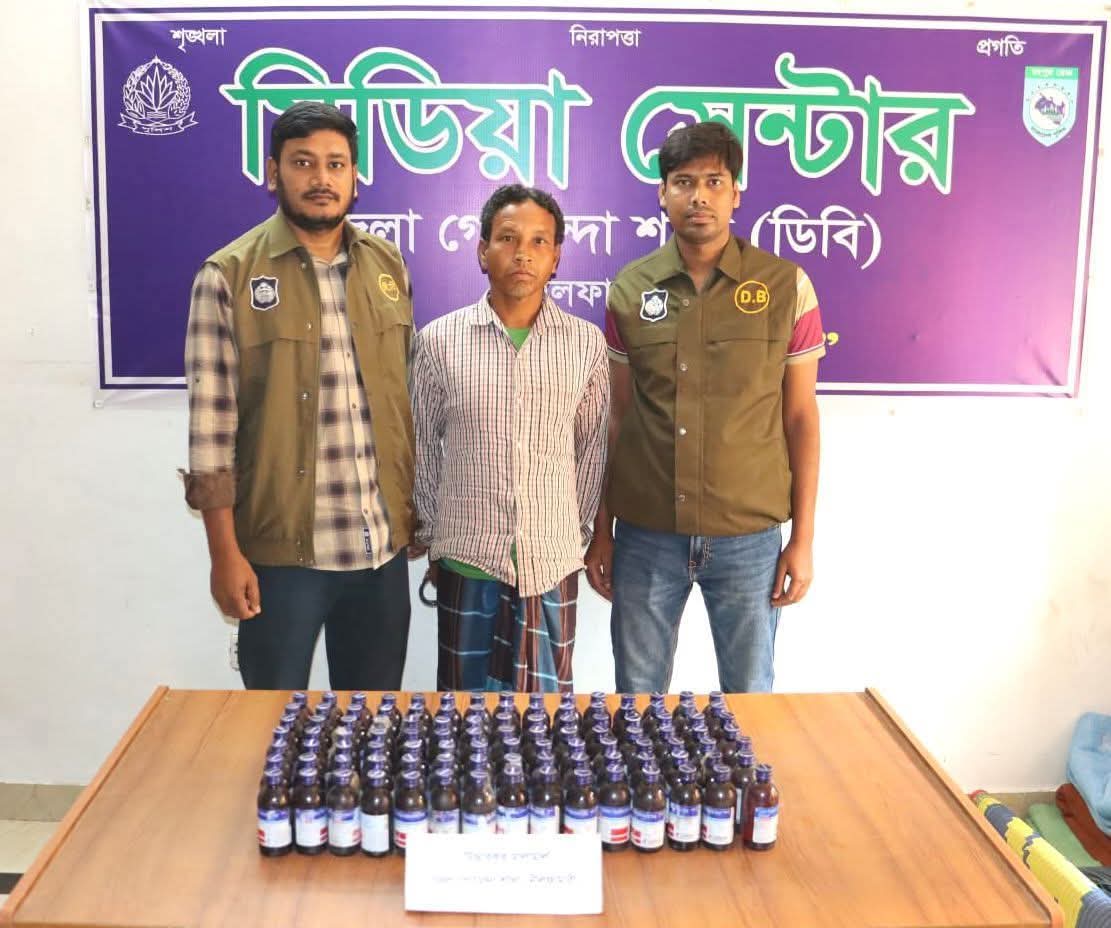 গোপন সংবাদের ভিত্তিতে কিশোরগঞ্জ থানা-এর দক্ষিণ বাহাগিলি (ঘোনপাড়া) এলাকায় প্রভাস চন্দ্র রায় এর বসতবাড়ীতে অভিযান চালিয়ে শয়নকক্ষ হতে প্লাস্টিকের বস্তায় রক্ষিত মোট ১০৫ (একশত পাঁচ) বোতল অ*বৈ*ধ মা*দ*ক*দ্রব্য Escuf Cough Syrup উদ্ধার ও জব্দ করা হয়।