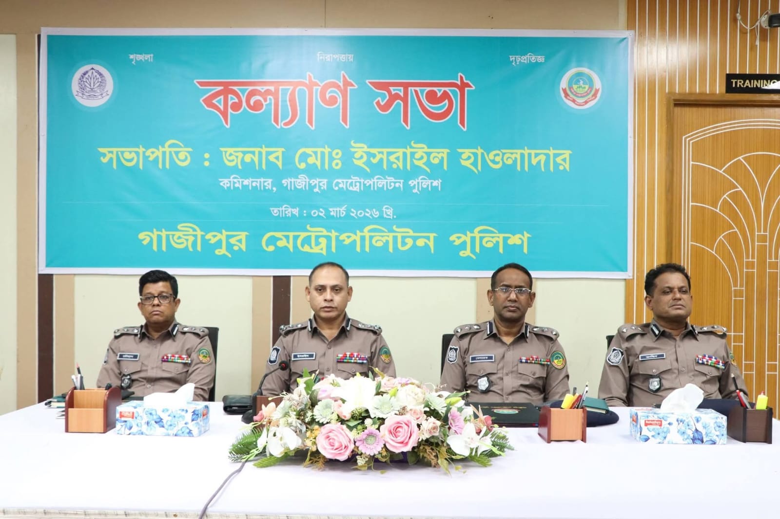 অদ্য ০২-০৩-২০২৬ খ্রিঃ তারিখ রোজ সোমবার গাজীপুর মেট্রোপলিটন পুলিশের মাসিক কল্যাণ সভা অনুষ্ঠিত হয়।