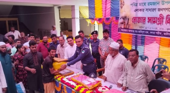 সাতক্ষীরার কালীগঞ্জ উপজেলায় পবিত্র মাহে রমজান উপলক্ষে এলাকার সাধারণ জনগণকে রোজার সামগ্রী বিতরণকরলেন কালীগঞ্জে উপজেলার নলতা শরীফের বিশিষ্ট সমাজসেবক আলহাজ্ব মোঃ জাহিদুল হক,বুধবার ১১ মার্চ বেলা ১২ টায় নলতা শরীফ মার্কেটে আনুষ্ঠানিকভাবে রোজার সামগ্রী বিতরণ করেন। অনুষ্ঠানে প্রধান অতিথি বক্তব্য রাখেন কালিগঞ্জ সার্কেলের অতিরিক্ত পুলিশ সুপার মোঃ রাজিব, সমাজসেবক জাহিদুল হকের সভাপতিত্বে ও কালিগঞ্জ প্রেসক্লাবের সাধারণ সম্পাদক সাংবাদিক সুকুমার দাশ বাচ্চু সঞ্চালনায় অনুষ্ঠানেবিশেষ অতিথির বক্তব্য রাখেন নলতা কেন্দ্রীয় আহসানেয়া মিশনের সহ-সভাপতি ও নলতা মাধ্যমিক বিদ্যালয়ের অবসরপ্রাপ্ত প্রধান শিক্ষক মোঃ ইউনুস আলী কালিগঞ্জ প্রেসক্লাবের সভাপতি শেখ সাইফুল বারী সপু, যুগ্ম সম্পাদক এম হাফিজুর রহমান শিমুল,এটিএন নিউজ জেলা প্রতিনিধি জিল্লুর রহমান কালিগঞ্জ উপজেলা প্রতিবন্ধী পুনর্বাসন কমিটির সভাপতি মোঃ ফজর আলী, কালিগঞ্জ থানার এসআই মোঃ শাহাদাত হোসেন প্রমুখ। পবিত্র মাহে রমজান উপলক্ষে এলাকার সাড়ে চার শতাধিক নারী পুরুষ প্রতিবন্ধী রুদ্র ব্যক্তিদের মাঝে,১০ কেজি চাউল ২ কেজি ডাল ওএকটি করে কাপড় প্রদান করা হয়।জানা গেছে প্রায় ৩৫ বছর যাবত জাহিদুল হকের পিতা জনাব মাহফুজুল হক এই খাদ্য সামগ্রী বিতরণ করে আসছেন, তারই ধারাবাহিকতায় তার পুত্র আলহাজ্ব জাহিদুল হক রমজান মাসে খাদ্য সামগ্রী ও কাপড় বিতরণ করেন ।ঈদের আগে অসহায় হাত দরিদ্র নারী পুরুষ রোজার সামগ্রী ও কাপড় পেয়ে সন্তোষ প্রকাশ করেন।