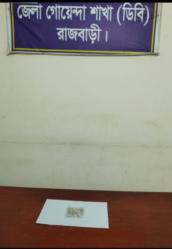 পুলিশ সূত্রে জানা যায়, জেলা গোয়েন্দা শাখা (ডিবি) রাজবাড়ীর একটি দল গোপন সংবাদের ভিত্তিতে গোয়ালন্দঘাট থানার উত্তর দৌলতদিয়া এলাকায় অভিযান পরিচালনা করে। এ সময় স্বপন শেখের কাছ থেকে ১০০ পুরিয়া হেরোইন উদ্ধার করা হয়। পরে তাকে আটক করে মাদকদ্রব্যগুলো জব্দ করা হয়।