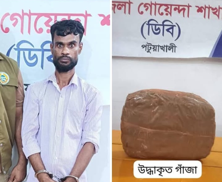 পটুয়াখালী জেলা গোয়েন্দা শাখার একটি অভিযানিক দল গোপন সংবাদের ভিত্তিতে অদ্য ১৩/০৪/২০২৬ খ্রি. রাত ১৯.৪৫ ঘটিকার দিকে পটুয়াখালী পৌরসভাস্থ স্মৃতি সৌধ এলাকা হতে ০২ (দুই) কেজি গাঁজাসহ মোঃ মনির প্যাদা(৩৫) গ্রেফতার করতে সক্ষম হয়।