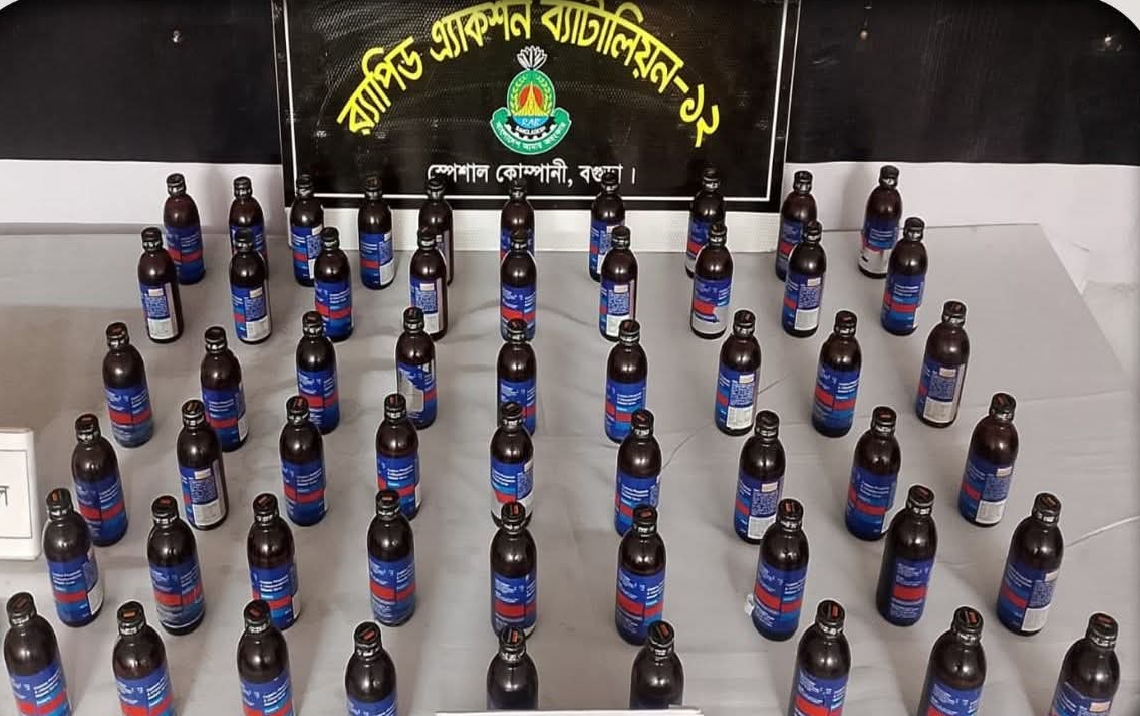 সিপিএসসি বগুড়া, র্যাব-১২ কর্তৃক বগুড়া জেলার সদর থানা এলাকা থেকে ৫৫বোতল ফেয়ারডিল সহ ০২ জন গ্রেফতার